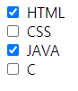 <input type="checkbox" name="language" value="css"> CSS <br>