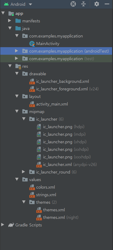 ✓ (androidTest) 단위 테스트 등을 위한 것으로 중급 이후에 사용