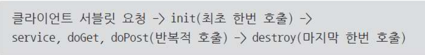 - init(): 서블릿이 처음으로 요청되어 객체가 생성될 때 호출되는 메서드