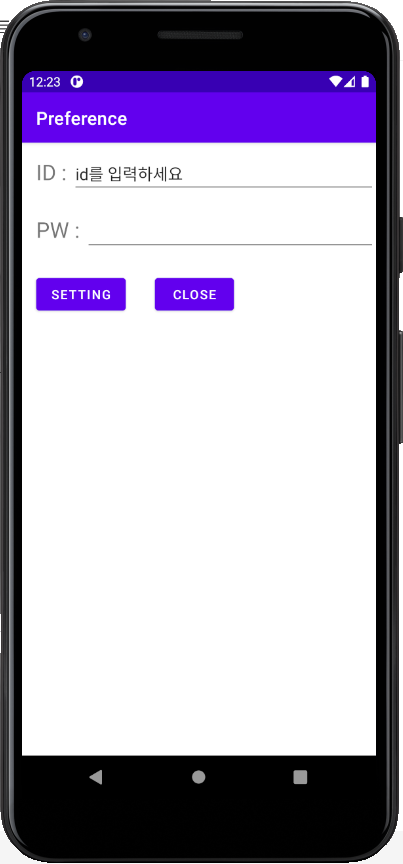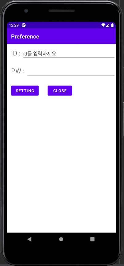 이번 포스팅에서는 프레퍼런스 기능을 확인하기 위한 부분이라 간단한 사용자 입력창으로만 구성하였다.