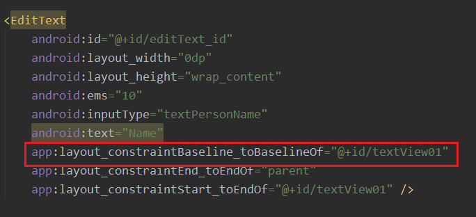 이런 식으로 옆 TextView와 editText의 높이를 맞추려면 Baseline을 이용하면 높이를 쉽게 맞출 수 있다.