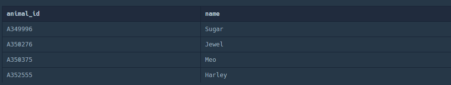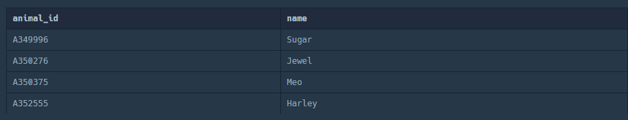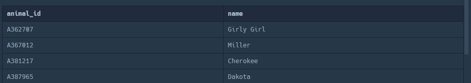 5. 동물의 아이디와 이름