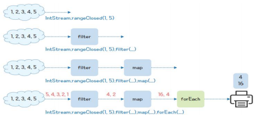✓ 스트림 연산의 연속 호출은 여러 개의 스트림이 연결되어 스트림 파이프 라인을 형성
