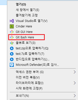 .git 이 들어있는 폴더에서 Git Bash Here을 눌러주세요