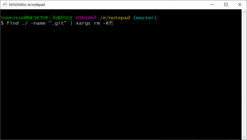 해당 명령어는 하위 디렉터리 내의 .git 파일을 모두 찾아 삭제합니다.