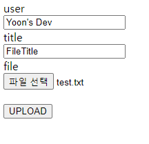 다음과 같이 user, title 그리고 선택된 file을 넘겨주는 페이지를 작성합니다.