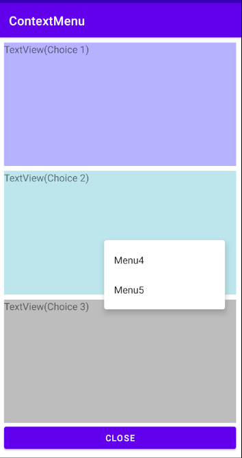 마찬가지로 context_menu2.xml에 Menu4와 Menu5를 추가해줍니다.