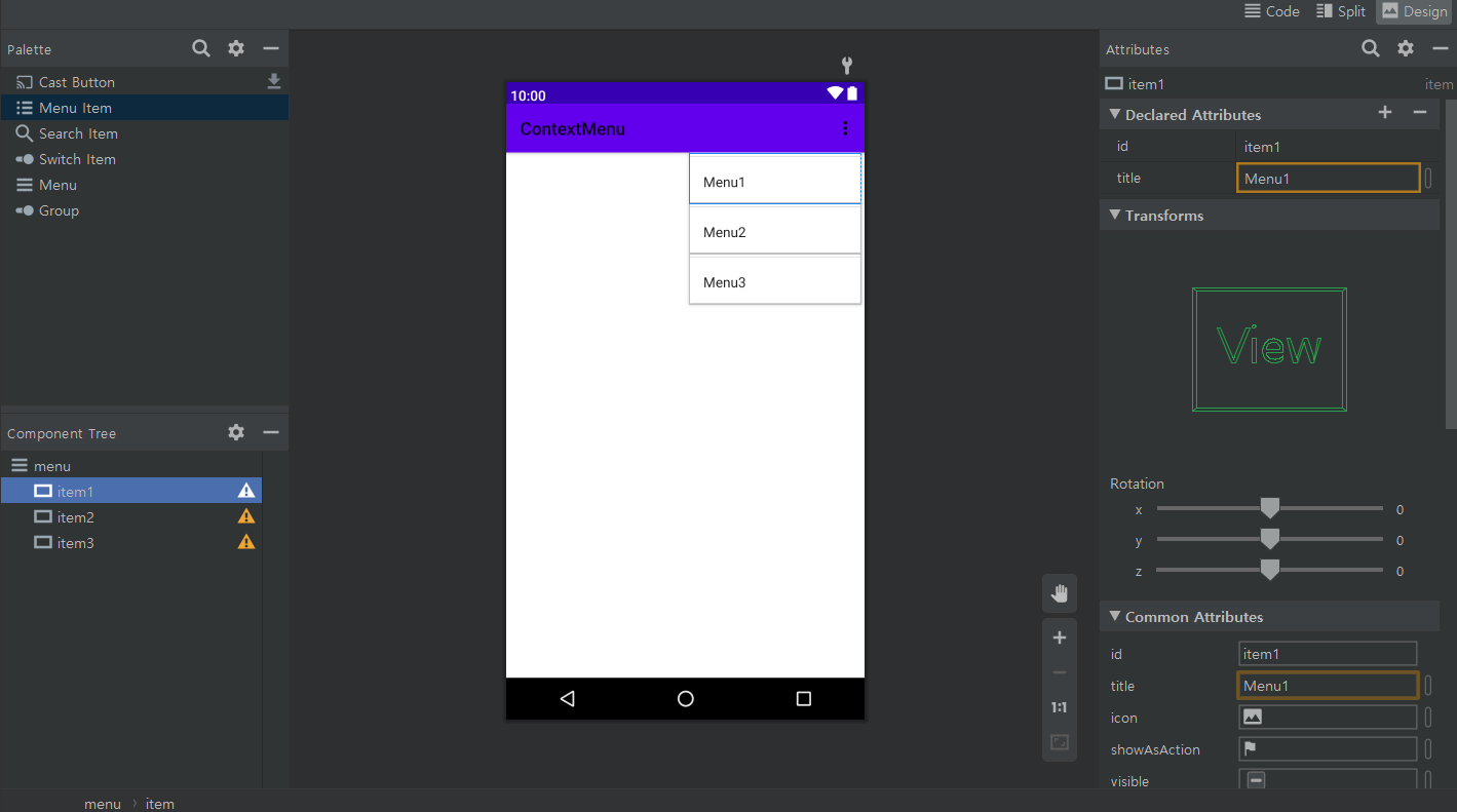 - 메뉴를 생성하는 방법 중에서 XML을 이용하여 컨텍스트 메뉴 구성