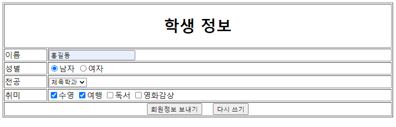 먼저 학생 정보를 입력하기 위해 <table> 태그를 이용해 학생 정보 입력하는 페이지를 만들자.
